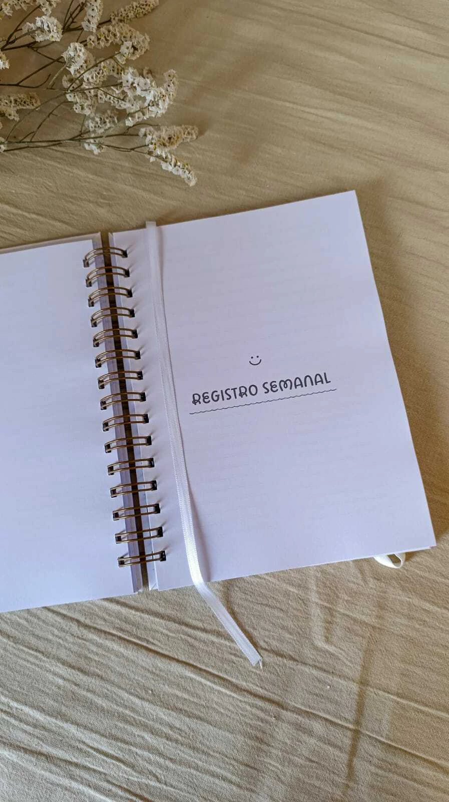 Tamaño A5 (15x21cm) tapa dura laminada + anillo doble metalico completo.