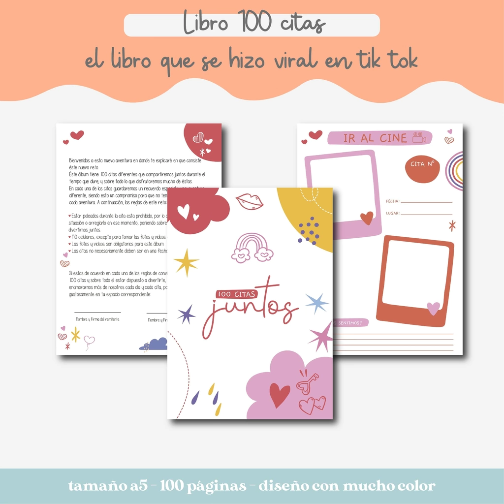Se trata de un libro con 100 citas para que cumplas junto a tu pareja!✨🙌🏼 Está basado en nuestras ideas y un diseño único creado por nosotros😍 Este libro se ha vuelto muy viral en TikTok y decidimos crearlo en Argentina💖